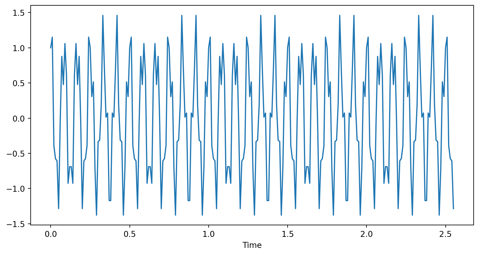 Here \(\eta_n\) values for \(n\) close to \(N-1\) are the negative frequencies since \(e^{-i\eta_n j}=e^{2\pi ij -i\eta_n j}=e^{i\eta_{N - n}j}\)
