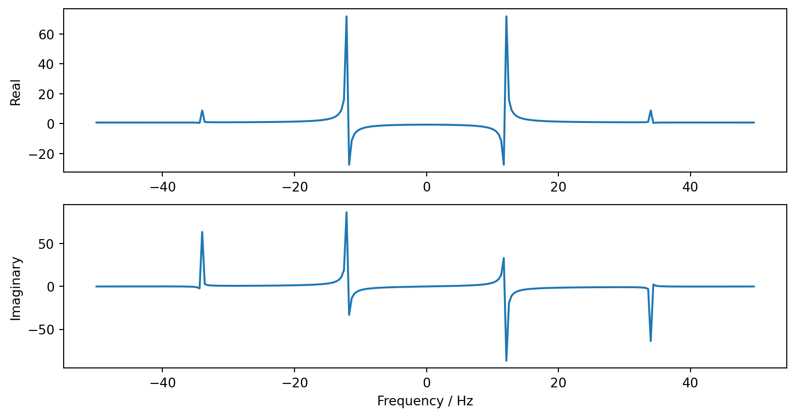 np.fft.fftfreq(n, d), which returns the frequencies (not the angular frequencies) for input size \(n\) and sample spacing \(d\).np.fft.fftshift(A) shifts data so that the zero frequency is in the centre.np.fft.ifftshift(A) inverts this.